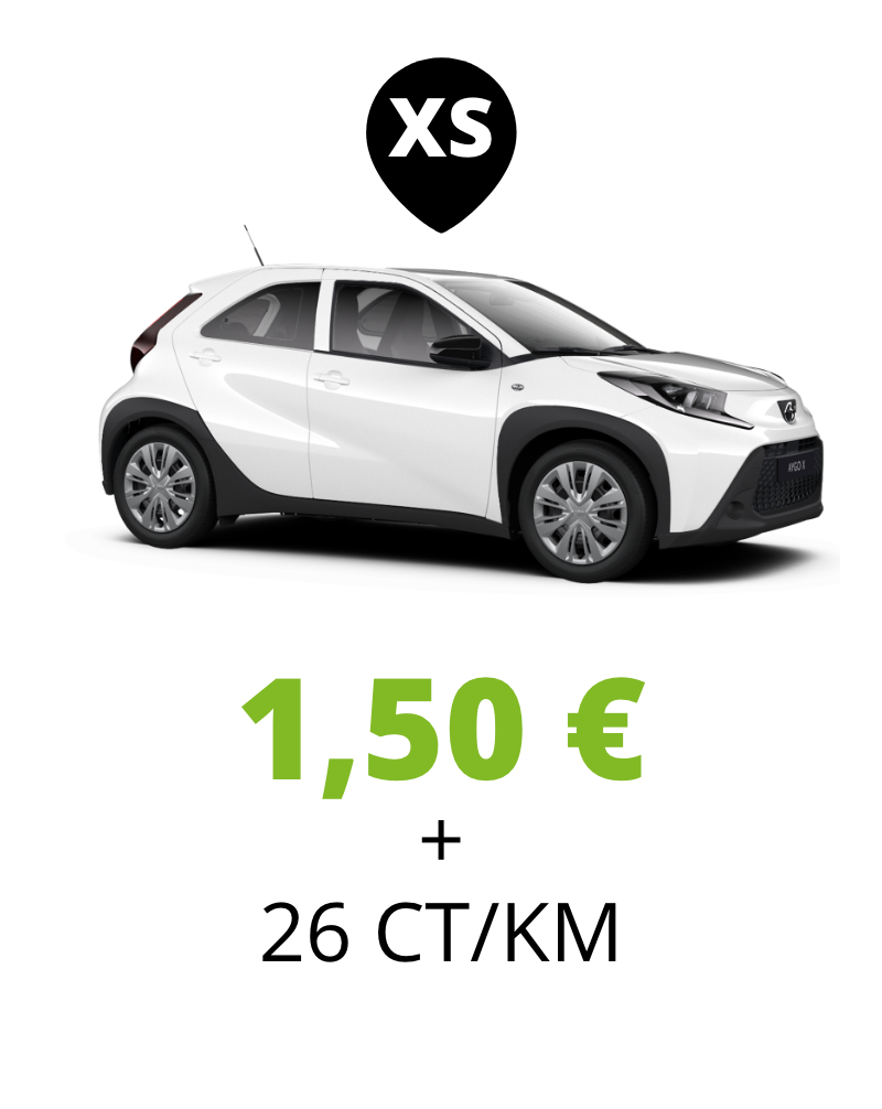 Entdecken Sie die Mietpreise in unseren Kategorien von XS bis XXL – ideal für Privatpersonen, Unternehmen und Vereine. Profitieren Sie von flexiblen Buchungsoptionen für jede Situation. Wir bieten auch Kartenoptionen mit vergünstigten Zeit- & Kilometerpreisen für häufig und vielfahrer.